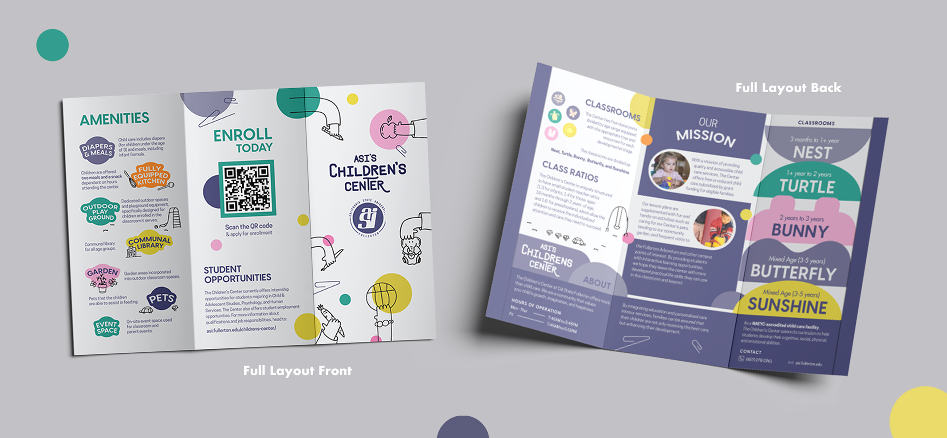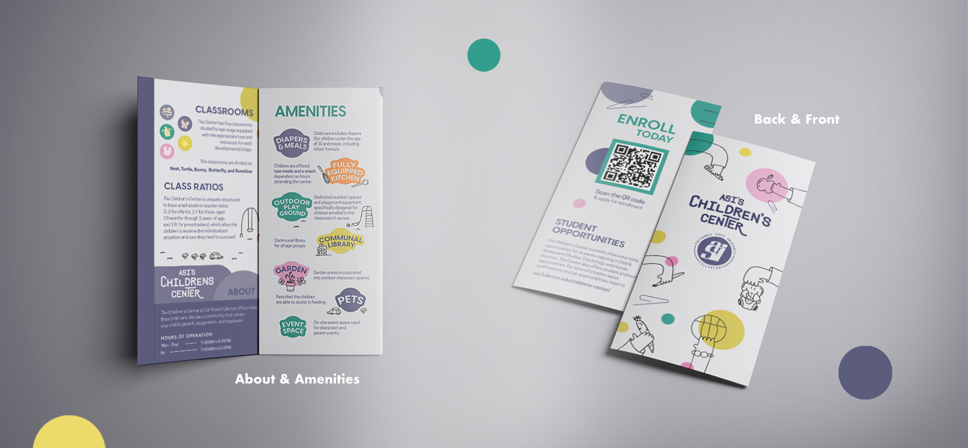 The Children’s Center provides on-campus, affordable daycare for student-parents. Brochure's main goal is to spread awareness about the center across campus and beyond.